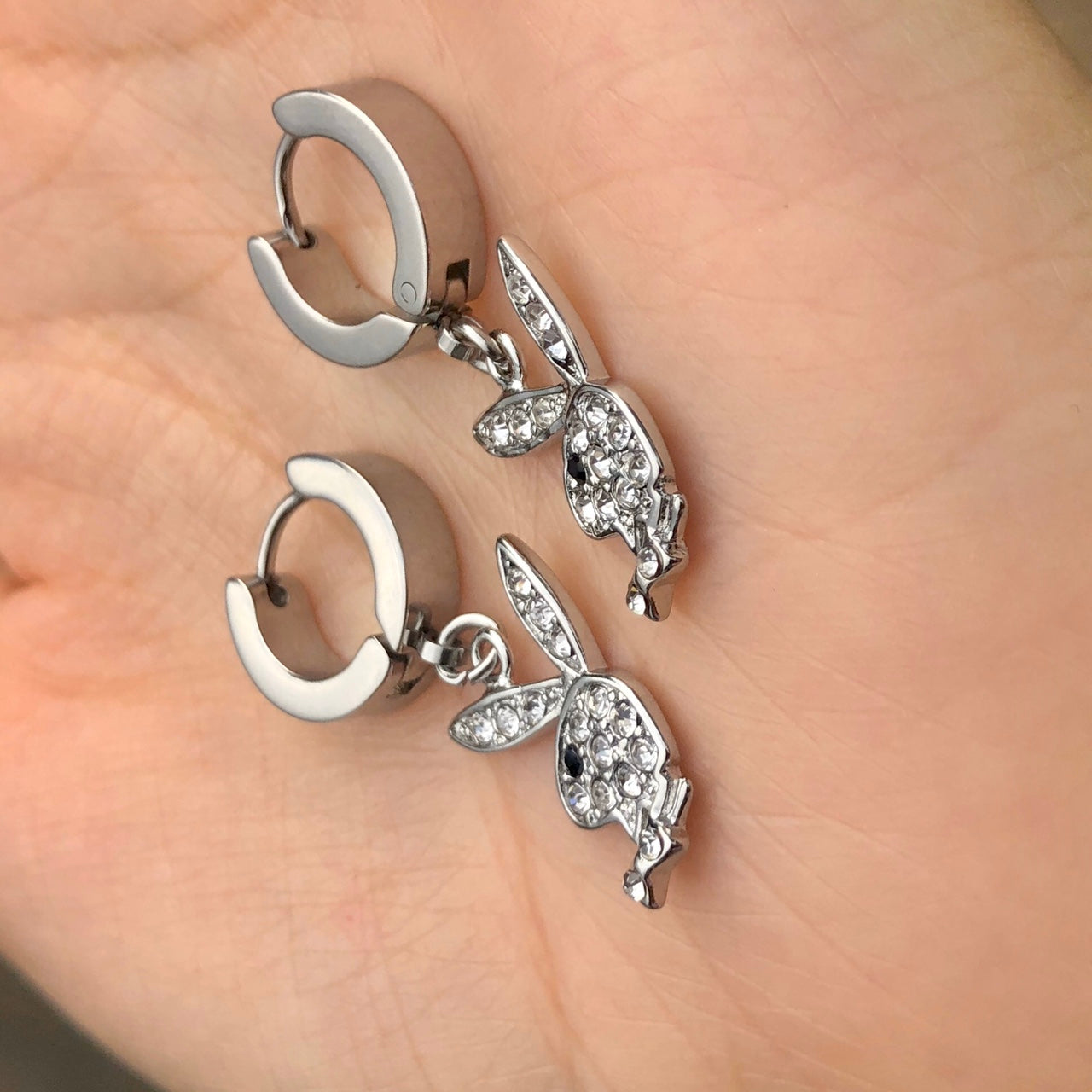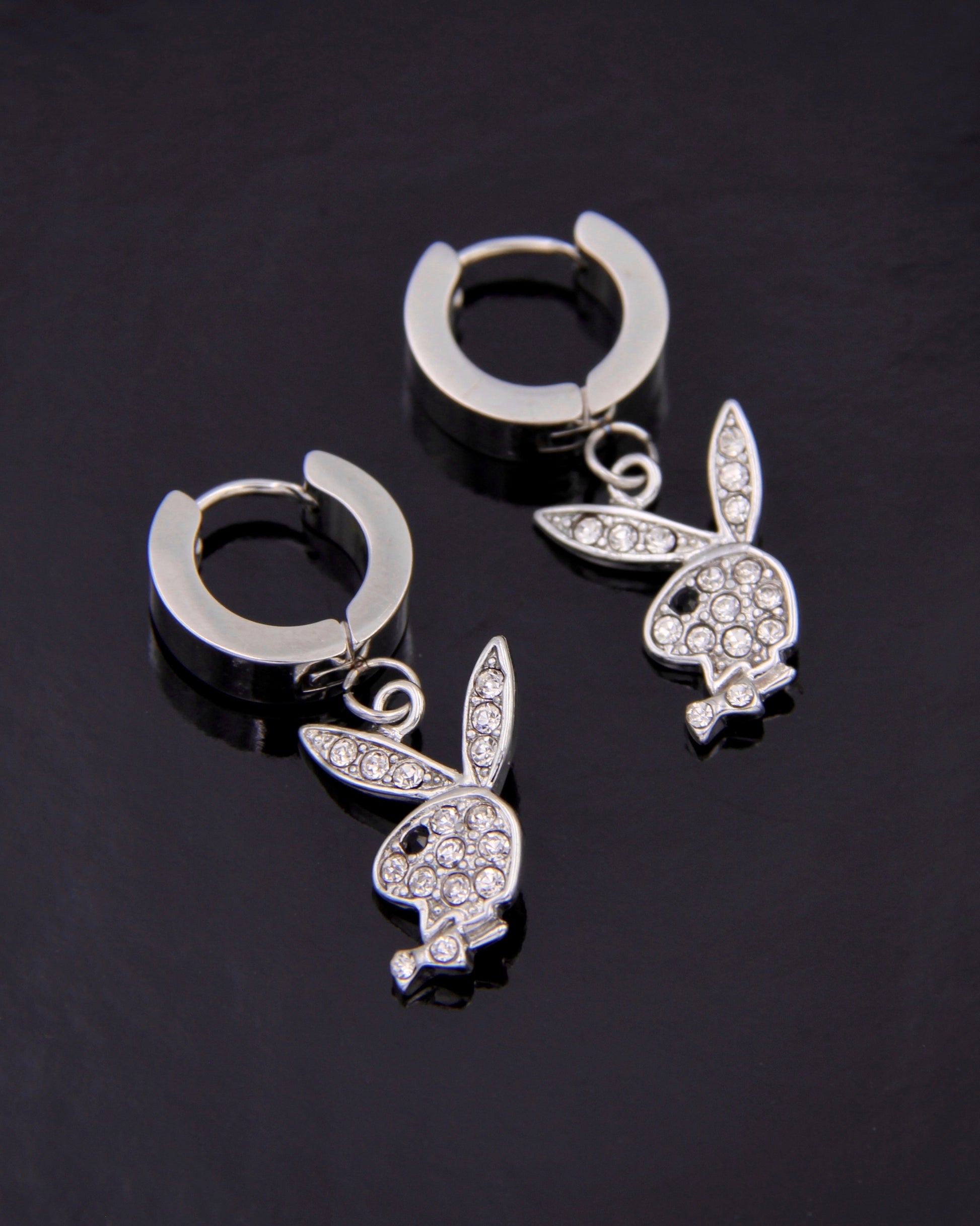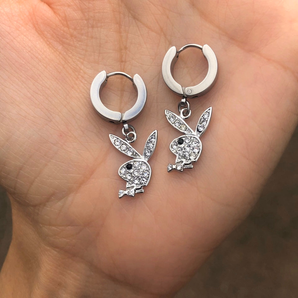 BLINGED OUT PLAYBOY BUNNY EARRINGS