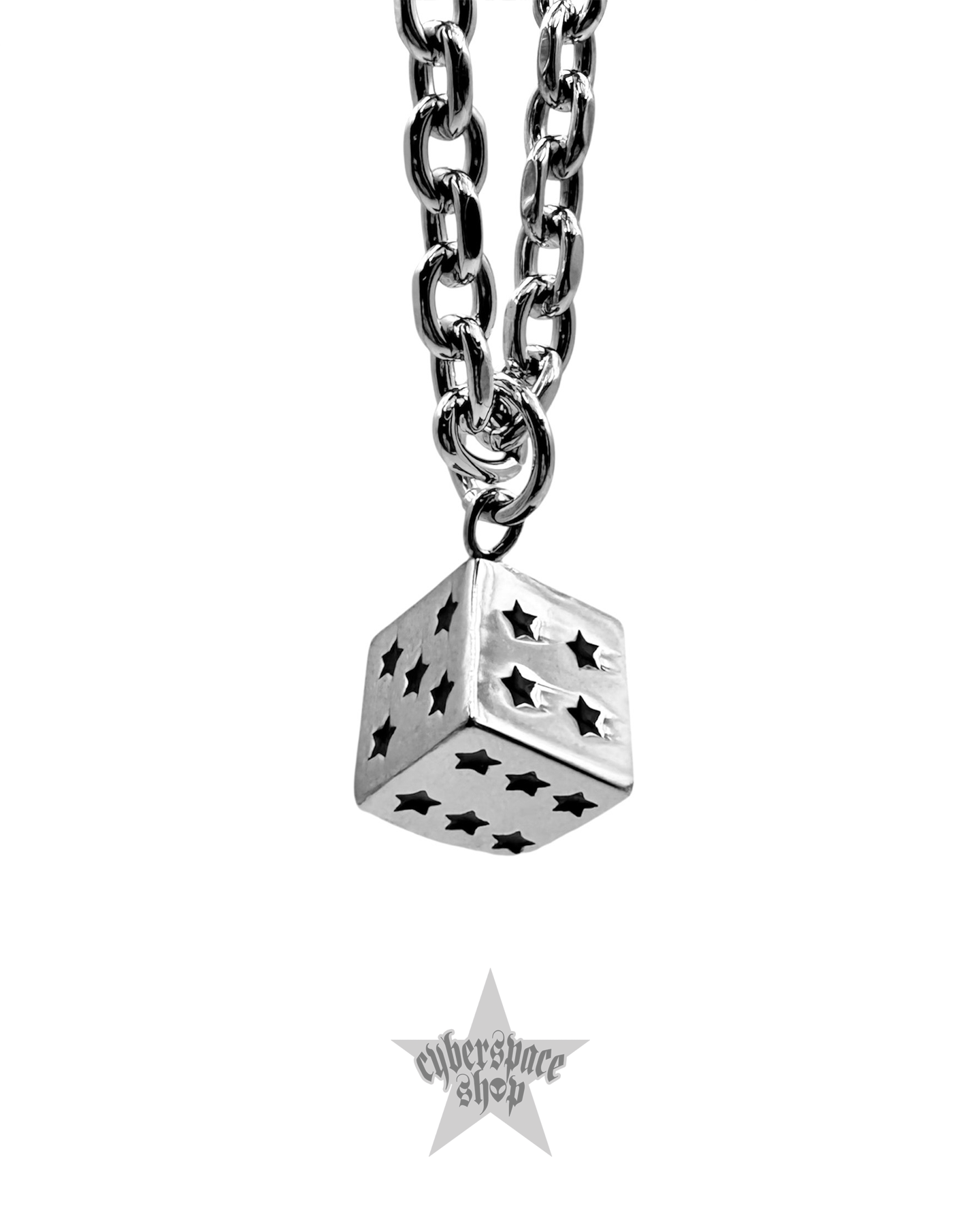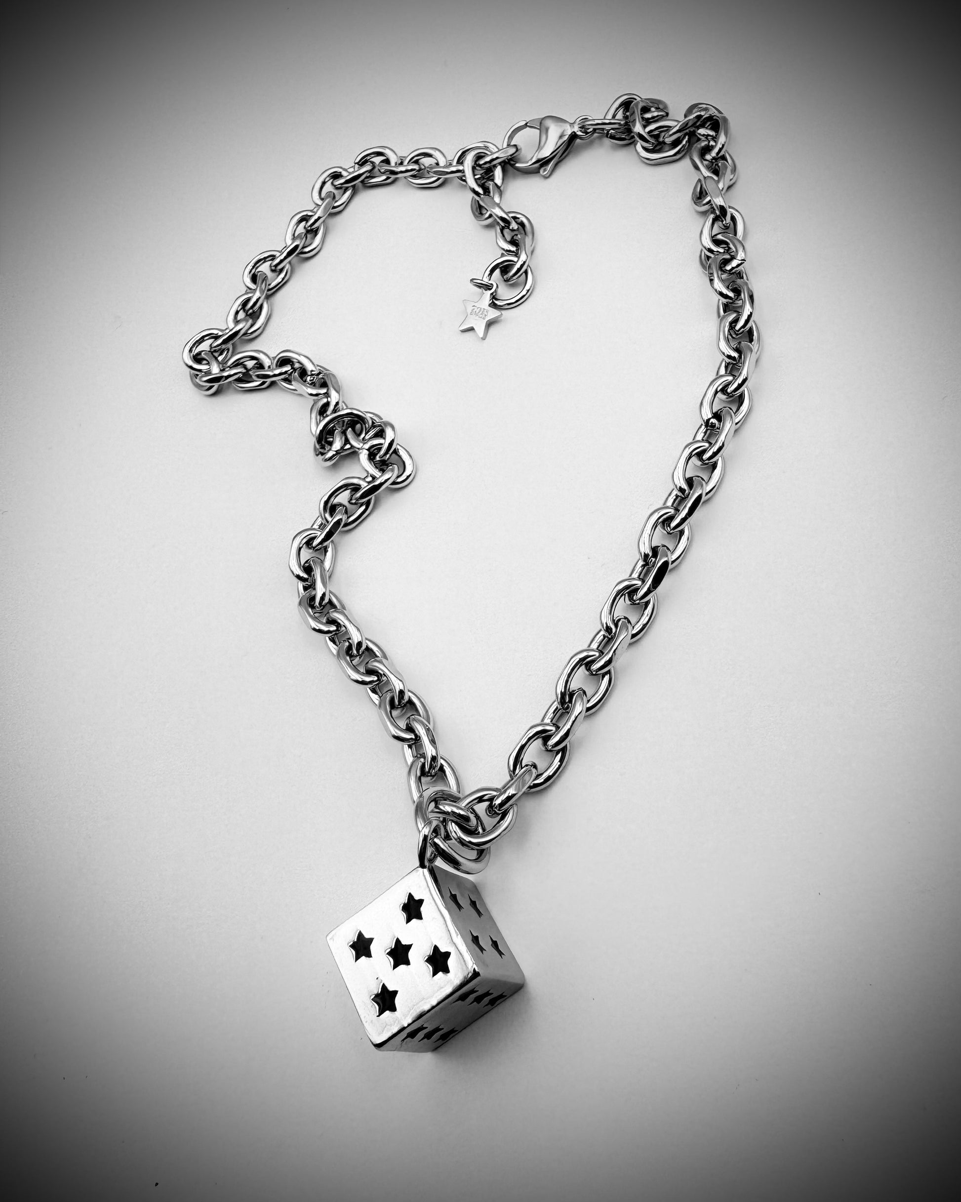 Bring the luck and the attitude with the Rockstar Dice Necklace. This single dice pendant necklace features a bold dice design with star shaped pips, giving it an alt punk twist on a classic symbol of luck. Minimal but eye catching, this star dice necklace fits any look, punk, grunge, Y2K, streetwear, or everyday!